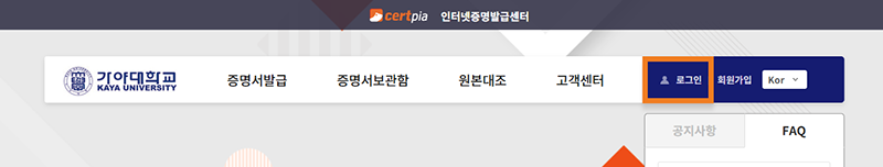 • ② 해당학교별 발급사이트에서 로그인 후 서비스 이용